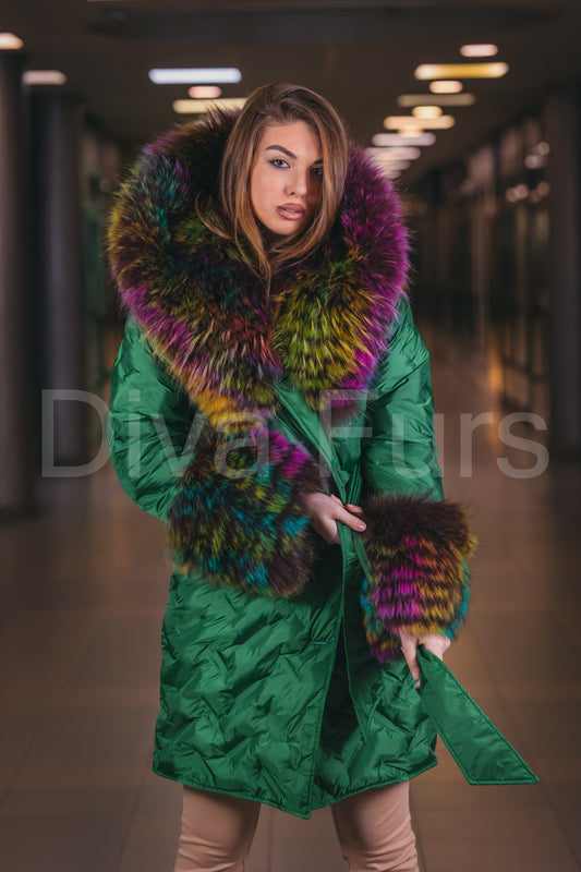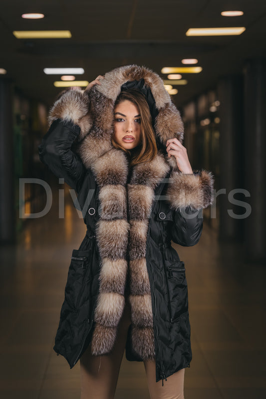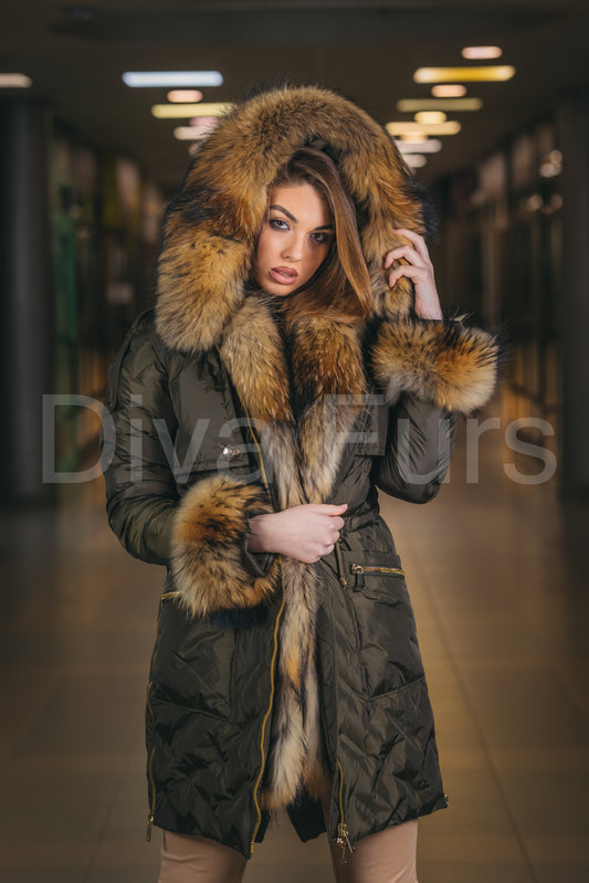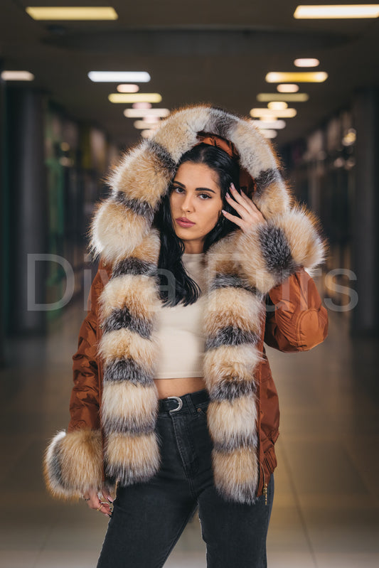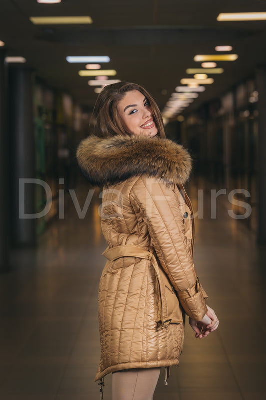 Kratka zlatna jakna sa bogatim prirodnim krznom