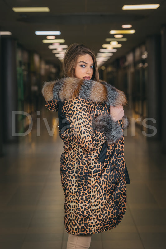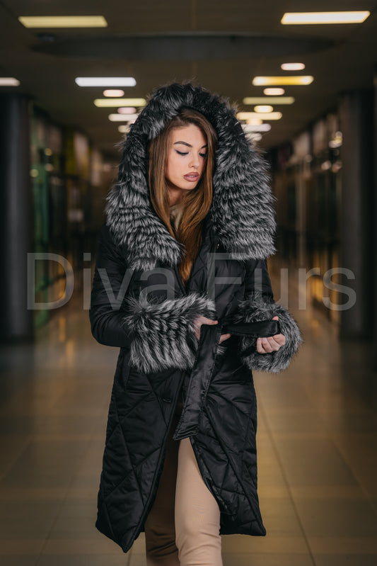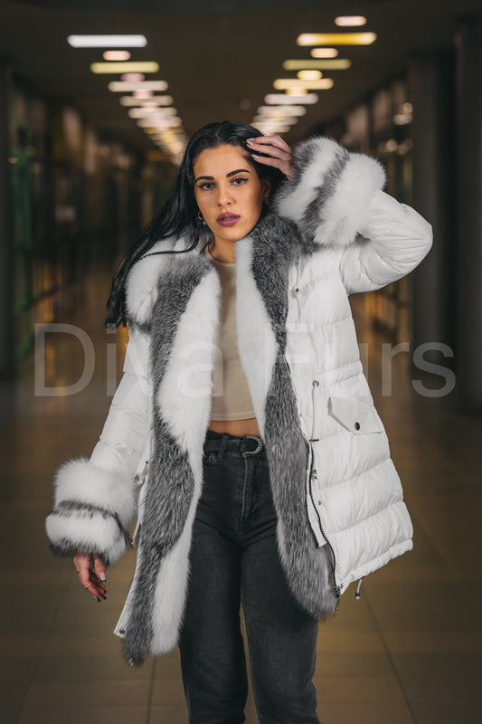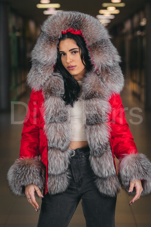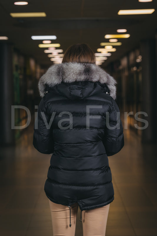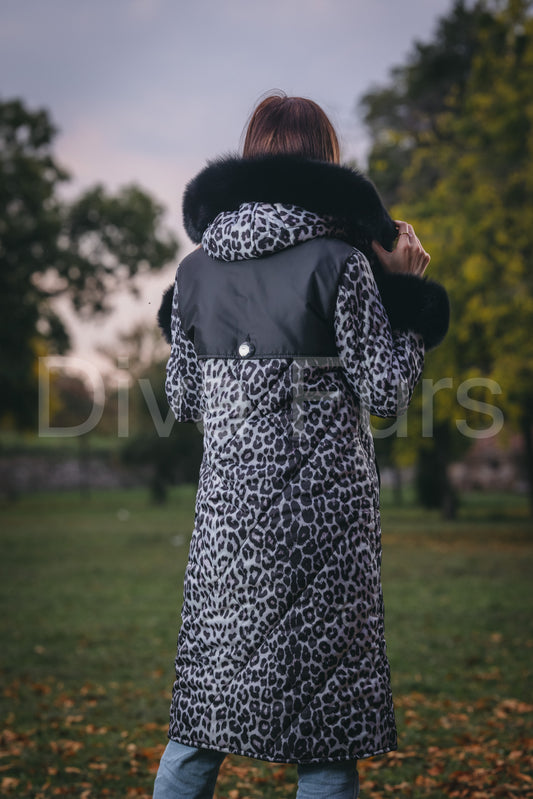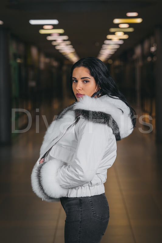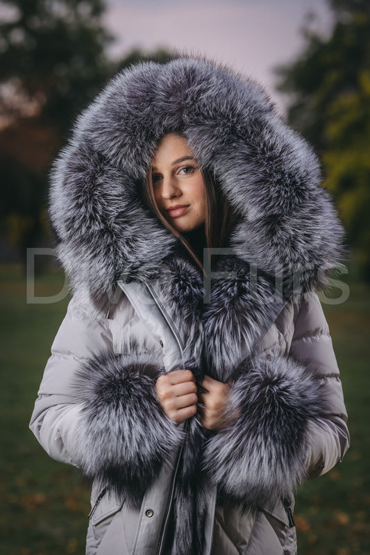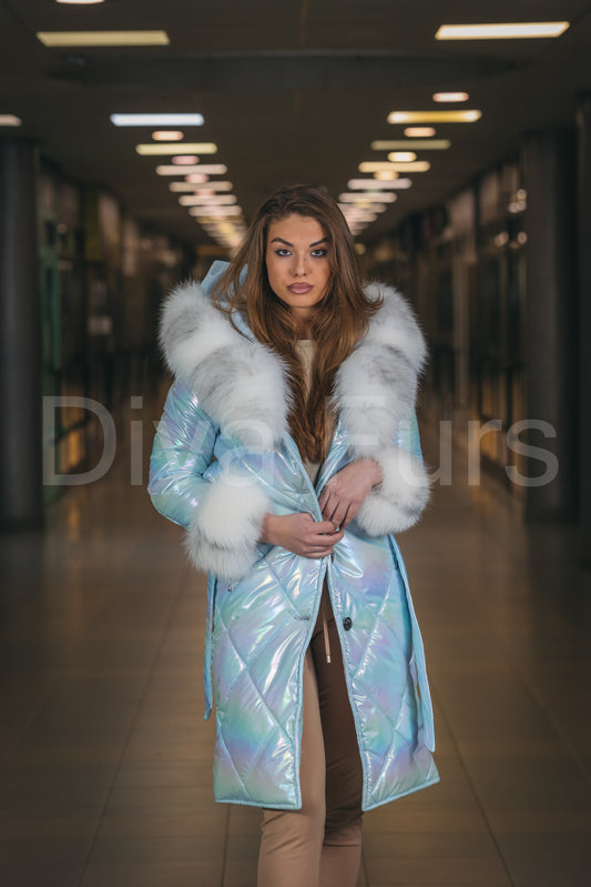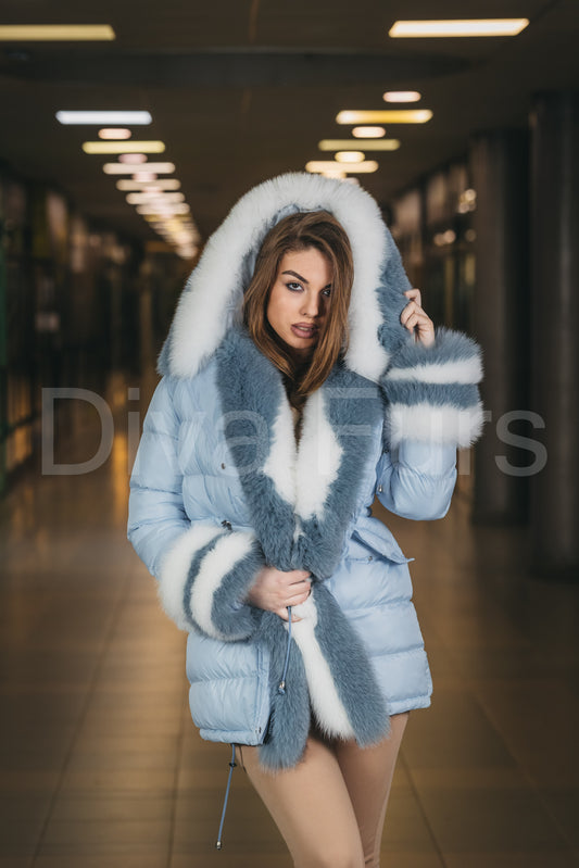 Svetlo plava jakna sa bogatim prirodnim krznom