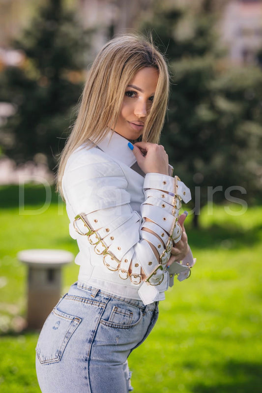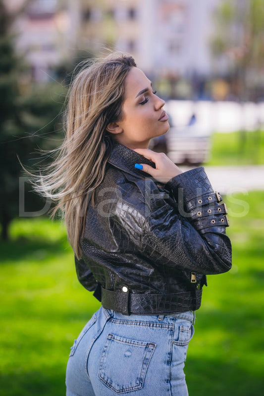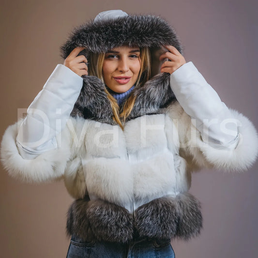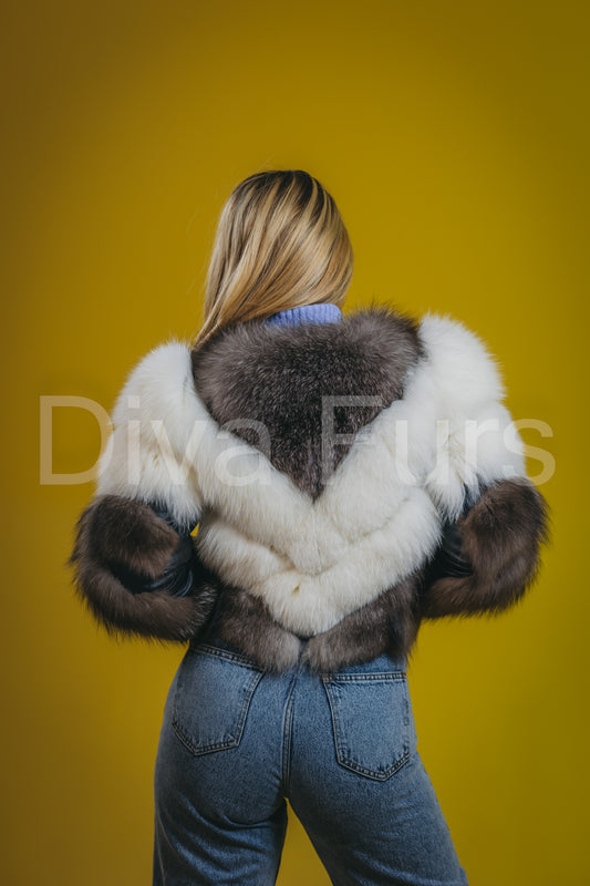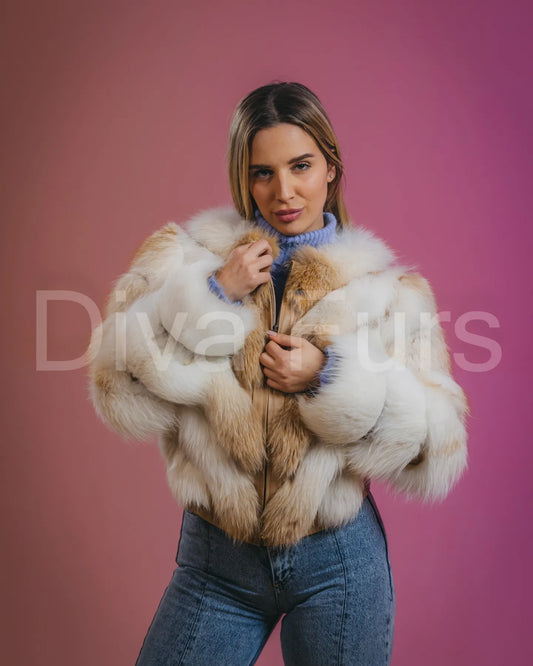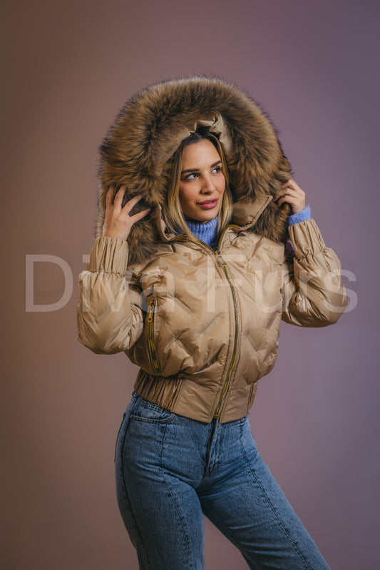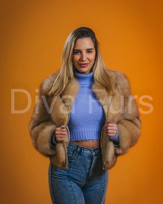 Kratka zlatna jakna sa bogatim prirodnim krznom