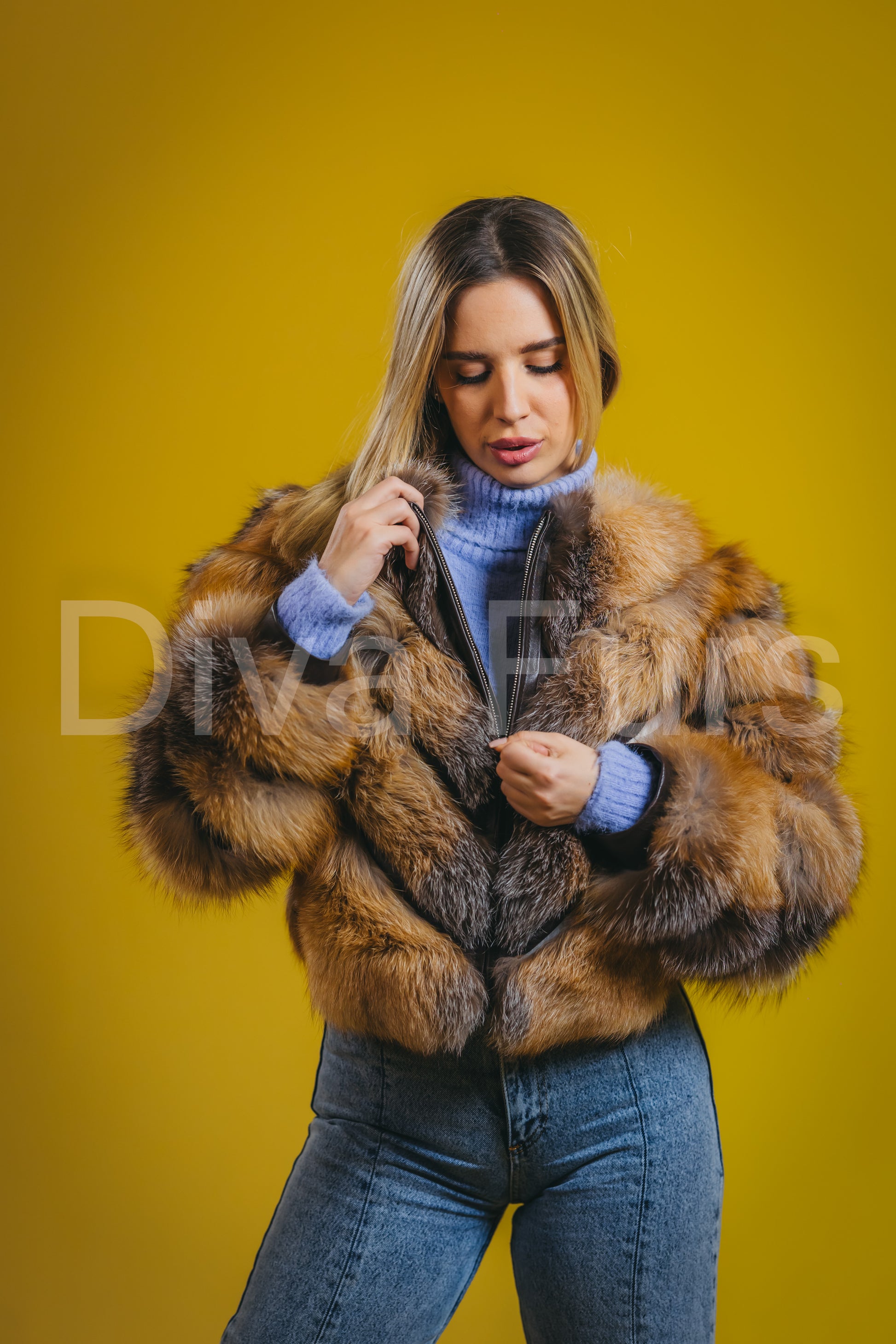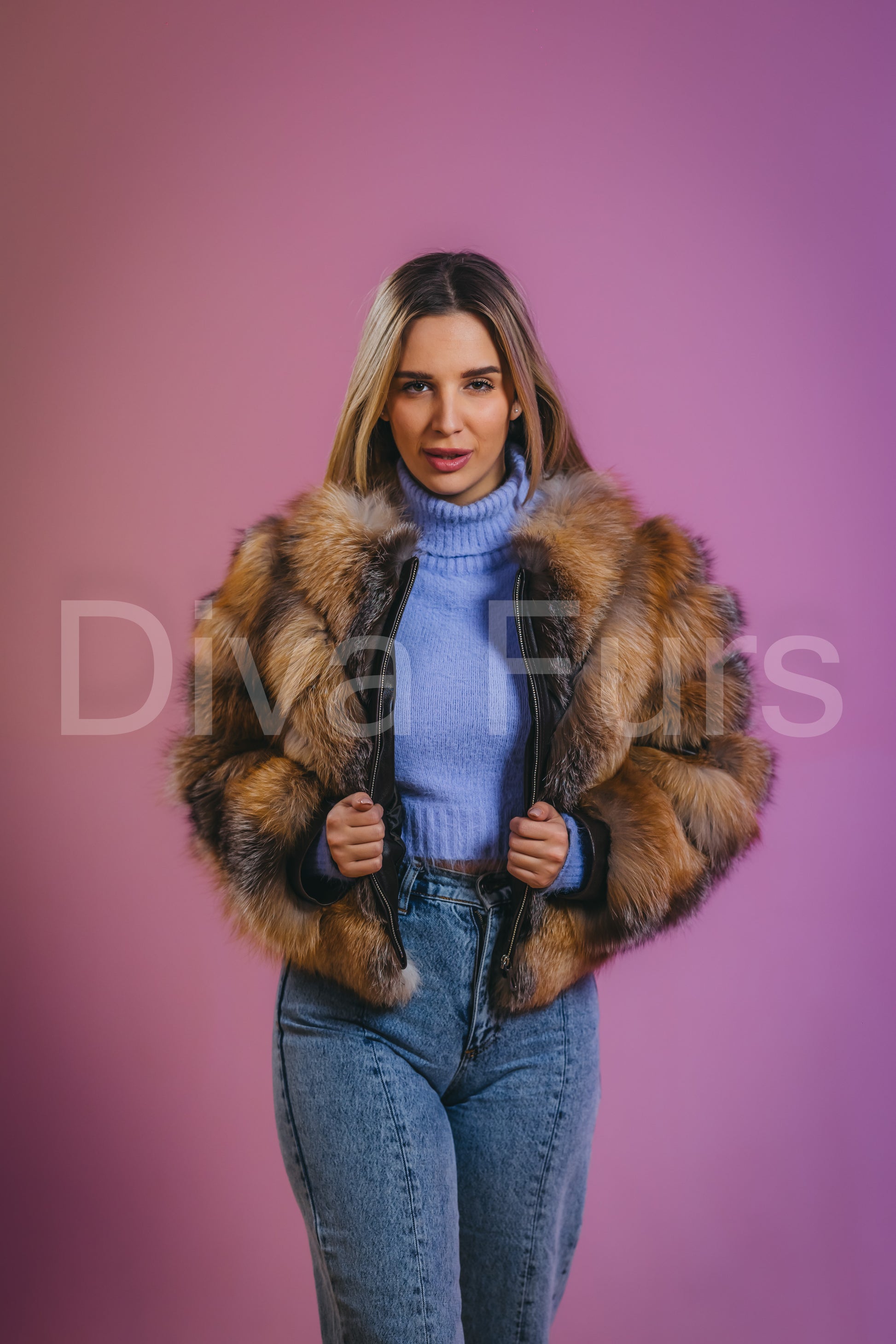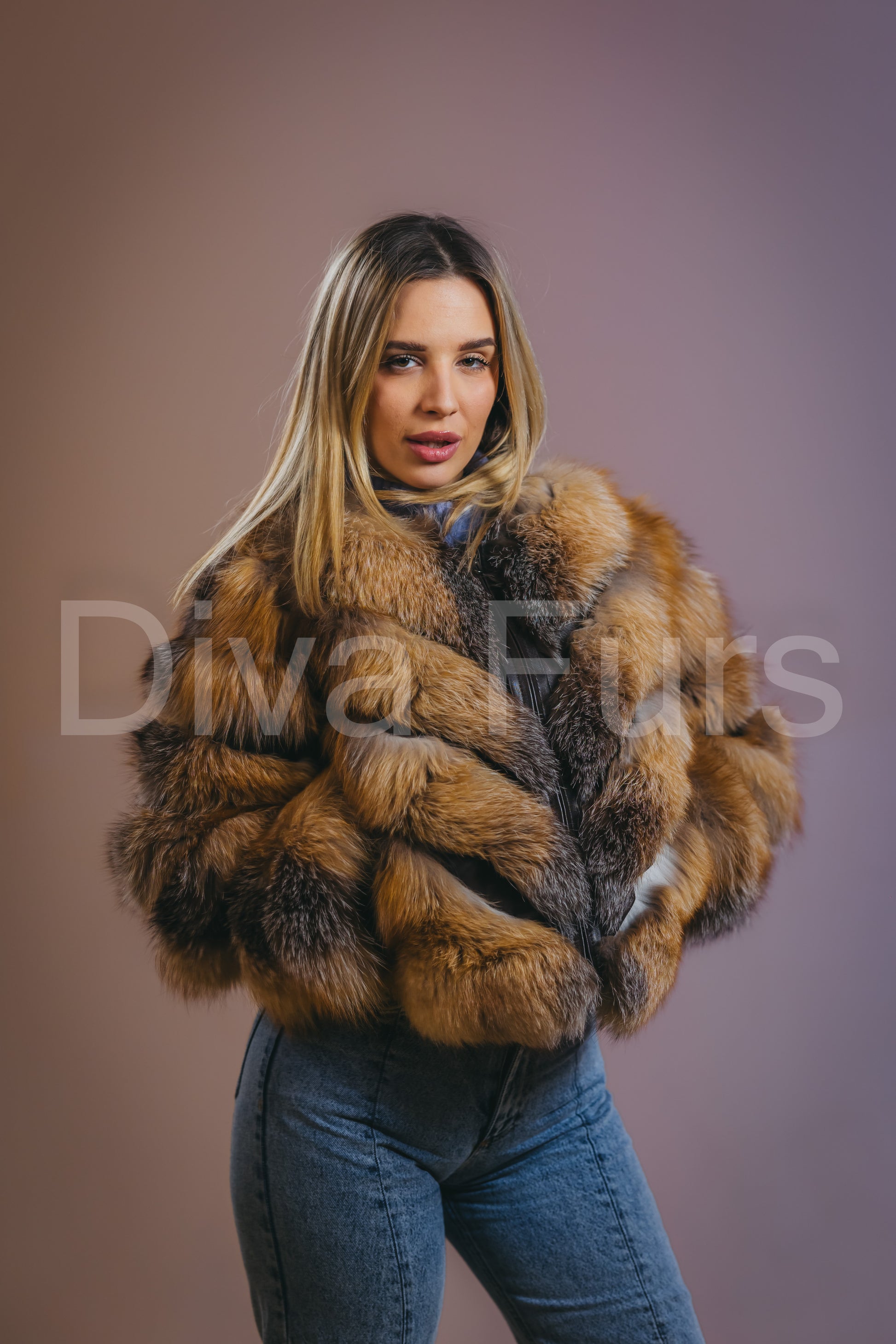 Bunda "Aurora" spoj je vrhunske elegancije i praktičnosti. Izrađena od luksuznog, 100% prirodnog krzna lisice, pruža izuzetnu toplotu i jedinstven izgled.